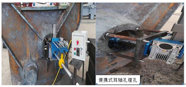 鐵水包鋼包中間包渣罐等冶金專用敞口容器類設(shè)備在使用一定時間后耳軸都會有不同程度的磨損,根據(jù)煉鋼煉鐵安全使用規(guī)范的要求,需要定期對耳軸進行探傷檢驗,檢驗不合格需要對耳軸進行拆除更換,傳統(tǒng)的更換方式需要將敞口容器運輸至大型落地鏜等加工廠進行耳軸孔的鏜制,由于敞口容器的體積較大,運輸成本很高,導(dǎo)致修復(fù)的經(jīng)濟性不好。近些年也有些企業(yè)采用現(xiàn)場維修的方式進行現(xiàn)場修復(fù),但是通常采用的是將耳軸火焰切割下來后直接根據(jù)耳軸孔的名義尺寸直接配置耳軸,這樣達到了現(xiàn)場更換耳軸的目的,但是經(jīng)過維修后的耳軸與耳軸孔之間沒有了過盈配合量,與新制的敞口容器相比使用安全性大大降低。而我公司采用便攜式鏜孔設(shè)備在現(xiàn)場進行精加工,滿足更換的新耳軸和耳軸孔之間的過盈量。裝配效果等同新制敞口容器一樣。罐體修復(fù)我們采用罐壁自動切割機配合環(huán)縫自動焊接機,罐體修復(fù)后在罐體丁字口及環(huán)口焊縫的焊接質(zhì)量是可以100%UT探傷合格。特點:現(xiàn)場高精度修復(fù),性價比高,質(zhì)量等同于新制產(chǎn)品。